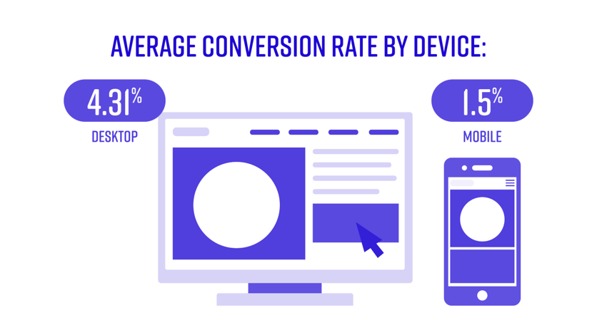 Even though consumers spend almost double the amount of time on mobile than they do on desktop, without an APP, desktop purchases represent 65% of conversions and published sales conversion rates on mobile are less than 1.5%, with 4.2% choosing to convert on desktop (BigCommerce 2020).
